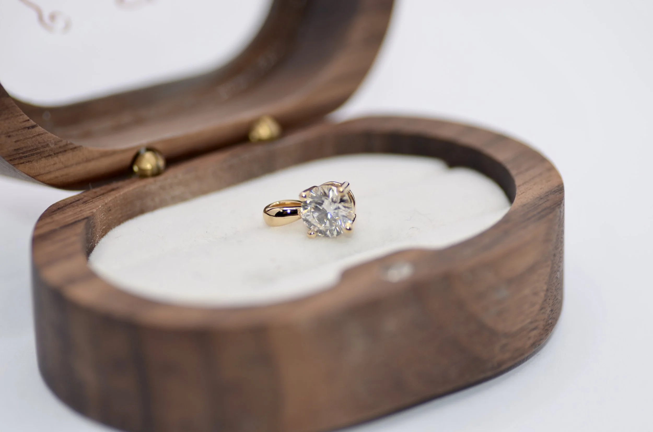 Reza opted for a classic solitaire design. While trends come and go, a simple gold setting holding a brilliant diamond never ages.